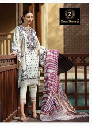 Alzohaib Ziaaz Designs Code 7773 Embroidered Dress In White Cream Colour