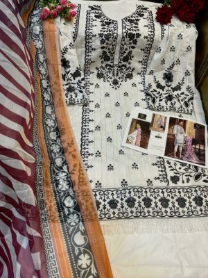 Rated 0 out of 5₹950.00Buy via WhatsAppSafa Fashion Fab S.f.955 Luxury Pret Formal Wear In Black And White Colour