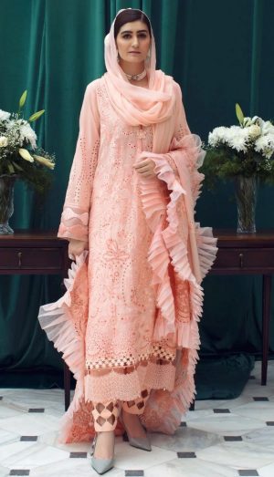 Rated 0 out of 5₹1,499.00Buy via WhatsAppCross Stitch DSG 801 Bridal Pakistani Suit in Salmon Colour