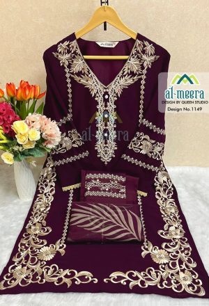 Rated 0 out of 5₹1,648.00Buy via WhatsAppAl Meera 1149 Readymed Pakistani Kurti in Wine Colour