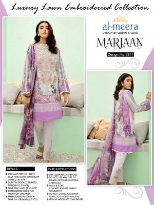 Rated 0 out of 5₹1,299.00Al Meera Launch Marjaan Design No 1211 In Purple And White Color By Queen Studio DetailsBuy via WhatsApp- Digitally Printed Front Back And Sleeve On The Luxury Lawn (2.40 Mtr)