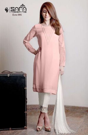 Rated 0 out of 5₹1,351.00Buy via WhatsAppSafa 995 by Safa Fashion Series Georgette Full Stiched Salwar Suits in Salmon Colour