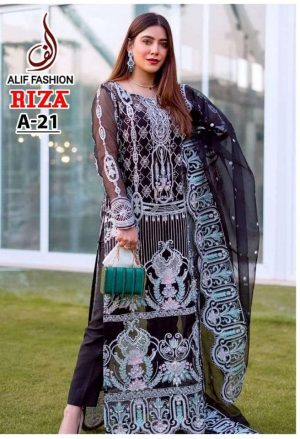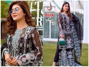 Alif Fashion Present Riza A-21 Salwar Suit in Black & Silver Colour