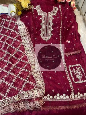 Rated 0 out of 5₹1,349.00Buy via WhatsAppMehbbob Tex Designer Pakistani Suits in Maroon Colour