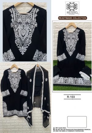Mushq R 103 Readymade Pakistani Suit in Black Colour
