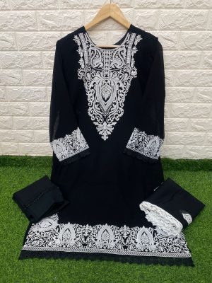 Rated 0 out of 5₹1,399.00Buy via WhatsAppMushq R 103 Readymade Pakistani Suit in Black Colour