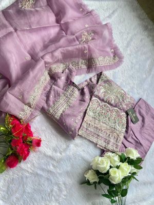 WEIGHT 1.2 Kg PRODUCT NAME ZIAAZ DESIGNS PRICE ₹ 1,698 DETAILS NOOR LAVENDER AND NOOR AQUA READYMADE XXL SIZE 44, ORGANZA STITCHED KAMEEZ WITH HANDWORK AND EMBROIDERY, SANTOON INNER AND BOTTOMS STITCHED XL, ORGANZA HEAVY EMBROIDERED DUPATTA. COLOUR VIOLET SHIPPING EXTRA -