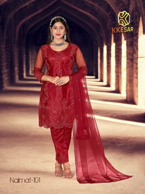 Naimat Fashion Studio 101 Kkesar Pakistani Suit in Red Colour
