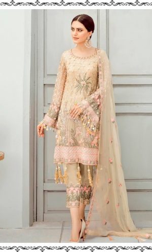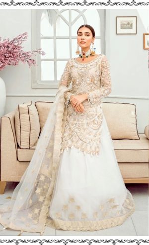 Ramsha Present R-222 Butterfly Net Heavy Embroidery in White Colour