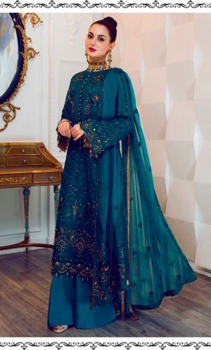 Ramsha Present R-214 Suit With Heavy Embroidery in Teal Colour