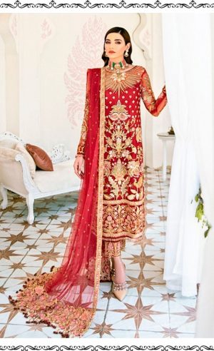 Ramsha R-170 Pakistani Salwar Kameez Net with heavy Embroidey in Red Colour