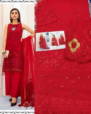 Ramsha Present R-216 Suit With Heavy Embroidery in Red Colour