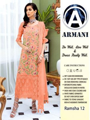 Rated 0 out of 5₹1,250.00Buy via WhatsAppArmani Present Ramsha 12 Series Georgette Salwar Suit in Salmon Colour