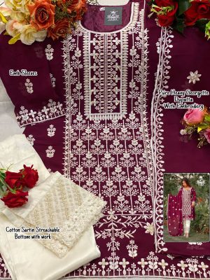 WEIGHT 1 KG PRODUCT NAME SF-122 SERIES PRICE 850/- TOP CAMBRIC COTTON BOTTOM COTTON INNER COTTON DUPATTA NET EMBROIDERED COLOUR ORCHID SHIPPING EXTRA -