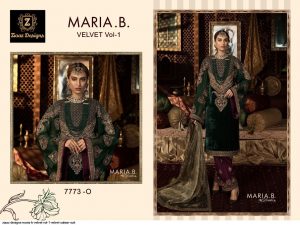 Ziaaz Design Present Maria B Velvet Vol-1 D.No.7773-O Series Suit in Sacramento Colour