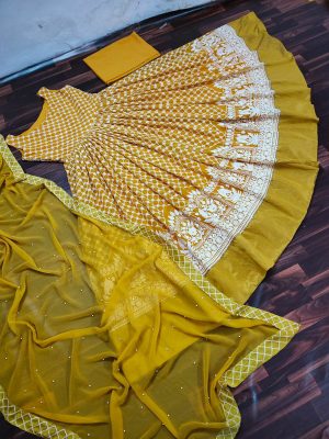 WEIGHT 1 KG PRODUCT NAME ZA-1281 BY ZA SERIES PRICE ₹ 1,599 TOP FABRIC GEORGETTE WITH EMBROIDERY WORK BOTTOM FABRIC MICRO COTTON (UNSTITCHED) DUPATTA FABRIC FOX GEORGETTE WITH RIVET MOTI WORK COLOUR YELLOW SHIPPING EXTRA -