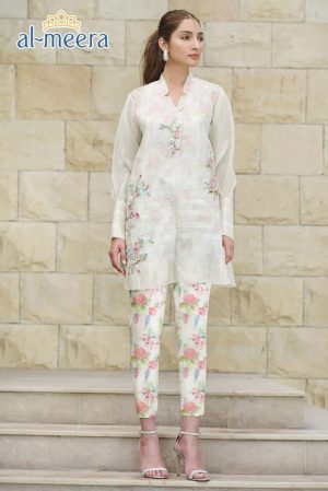 Al-Meera D.no-1115 Design by Queen Studio Print Kurti in White Cream Colour