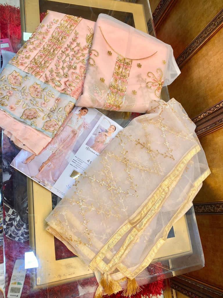 - Top: Butter Fly Net With Heavy Embroidery & Handwork