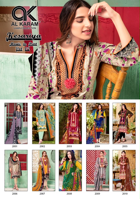AL KARAM KESARIYA VOL 2 LAWN KARACHI SUITS WHOLESALER