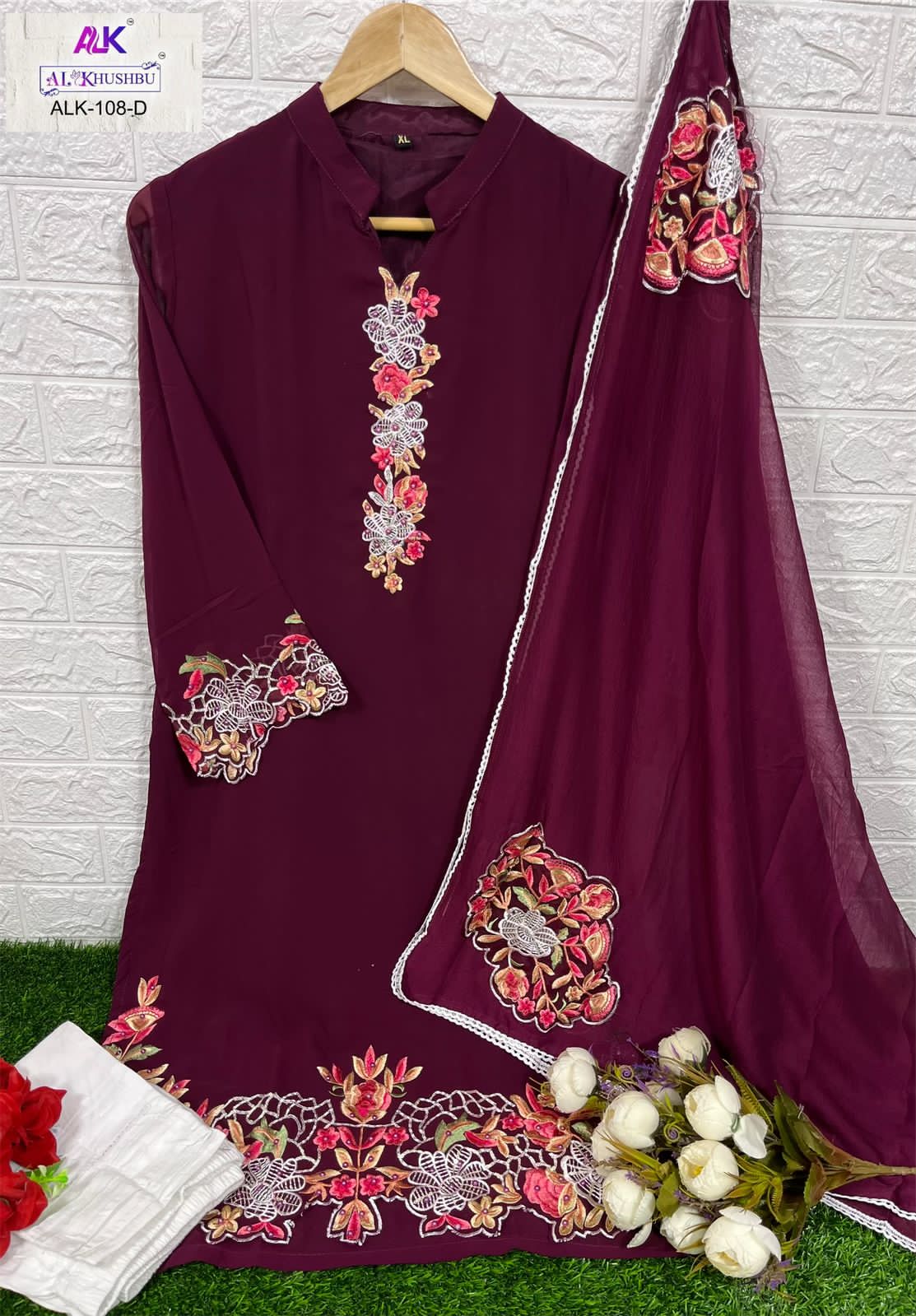 About this product: Al Khushbu Alk 108 D Pakistani Suits in Beautiful Fancy Colorful Stylish Party Wear Dresses At Wholesale Price. The manufacturer is well known and the quality is pre-tested and checked. For Booking, you can Call or WhatsApp us on +91-90167 57806.