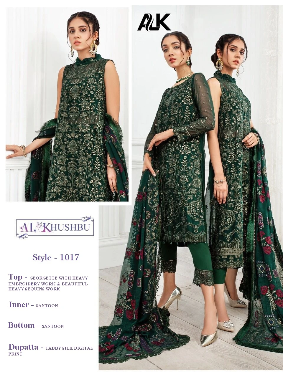 About this product: Al Khushbu Present ALK D.no.1017 Georgette Series Salwar Suit in Beautiful Fancy Colorful Stylish Party Wear Dresses At Wholesale Price. The manufacturer is well known and the quality is pre-tested and checked. For Booking, you can Call or WhatsApp us on +91-90167 57806.