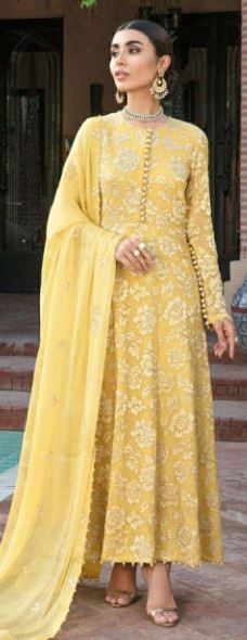 Al Khushbu Present ALK D.no.427 Series Georgette Suits in Mustard Yellow Colour