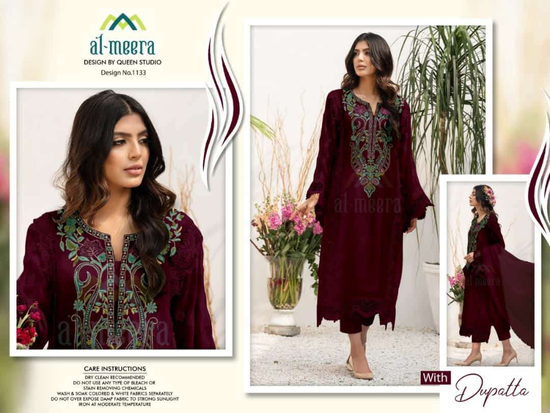 About this product: Al-meera Present Queen Studio D.no.1133 Series Wear Dresses At Wholesale Price. The manufacturer is well known and the quality is pre-tested and checked.