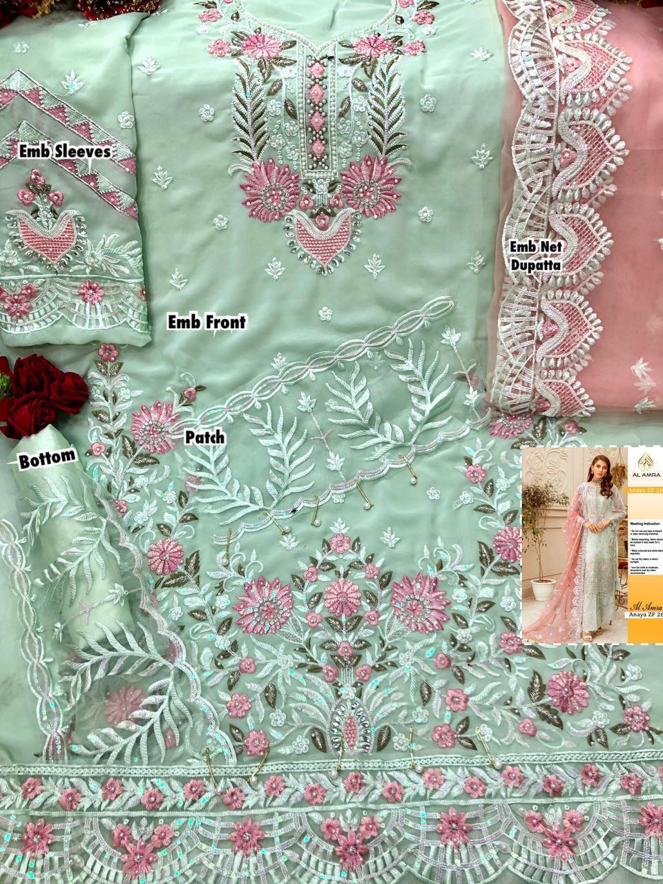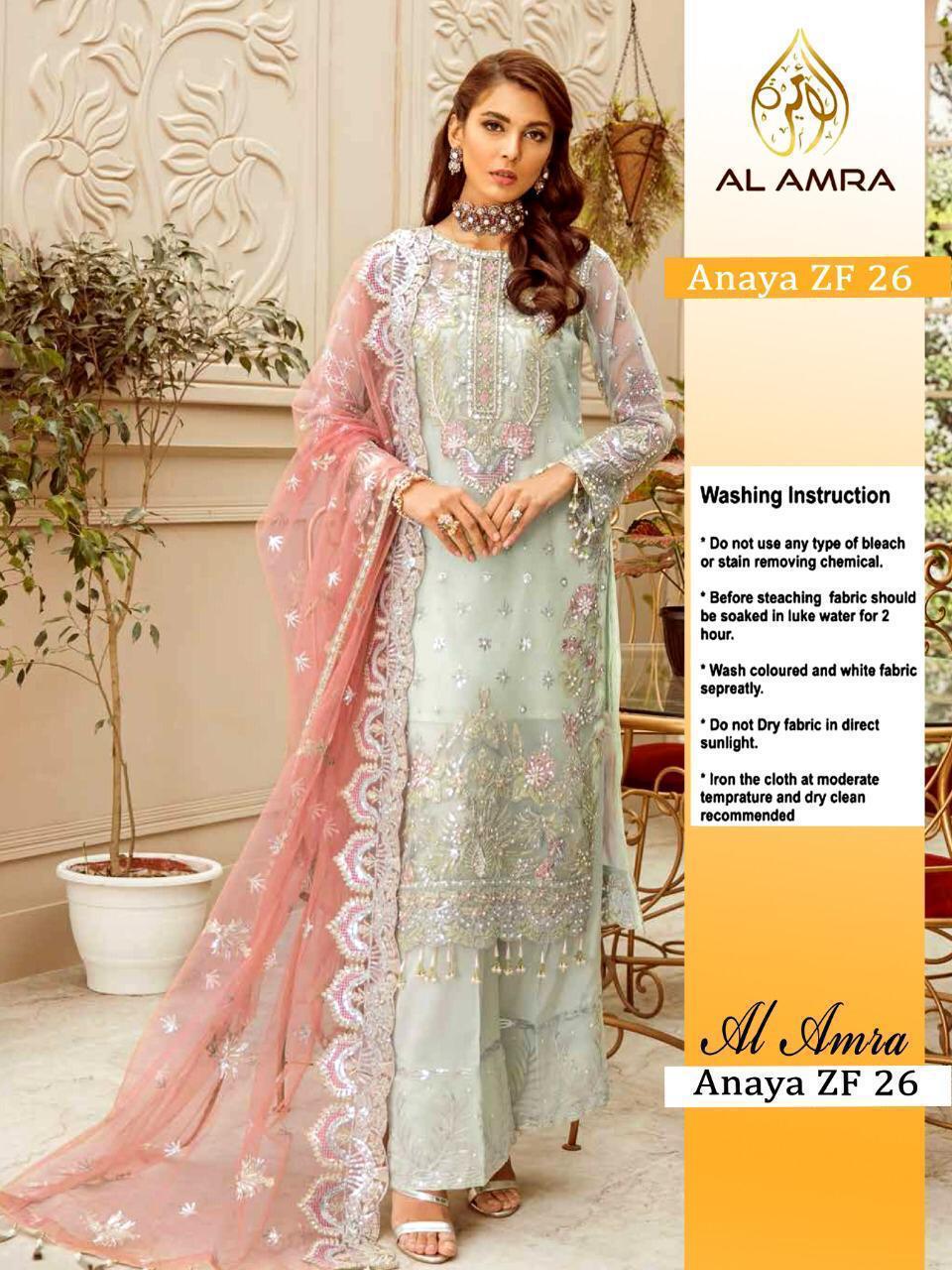 About this product: ANAYA HIT DESIGN Zf-25 BY AL AMRA Pakistani Suits Beautiful Fancy Colorful Stylish Party Wear Dresses At Wholesale Price. The manufacturer is well known and the quality is pre-tested and checked.