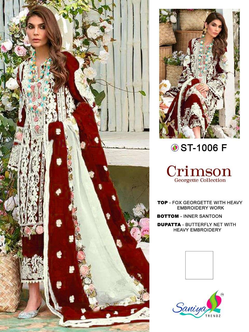 About this product: Crimson Present ST-1006-F Series Georgette Salwar Suit in Beautiful Fancy Colorful Stylish Party Wear Dresses At Wholesale Price. The manufacturer is well known and the quality is pre-tested and checked.
