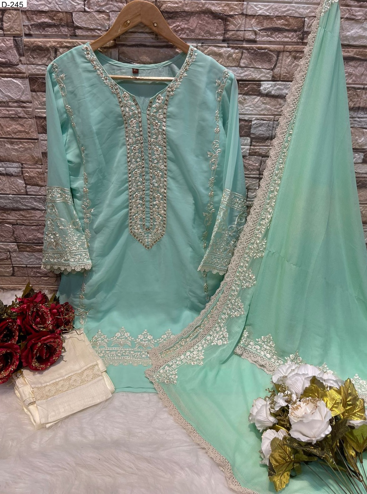| TOP | GEORGETTE WITH EMBROIDERY & KHALTI WORK WITH INNER |