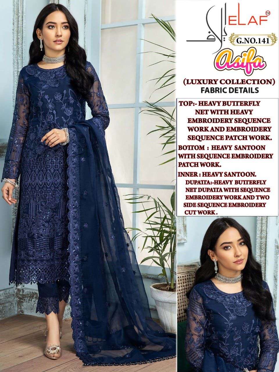 About this product: Elaf Present Asifa G.no.141 Series Net Salwar Suit in Fancy Colorful Stylish Party Wear & Occasional Wear Faux Georgette With Embroidery Dresses At Wholesale Price. The Manufacturer Is Well Known And The Quality Is Pre-tested And Checked.