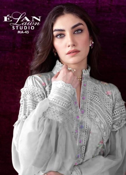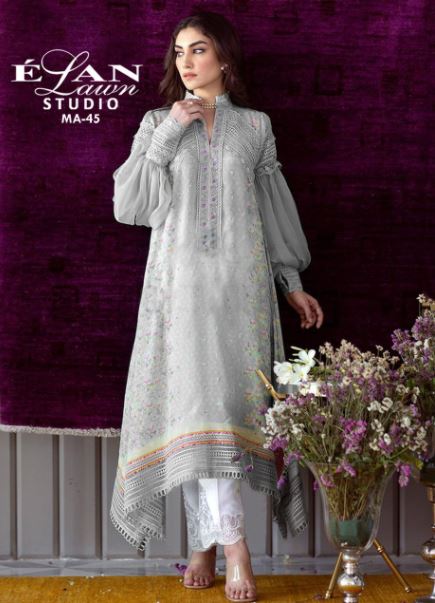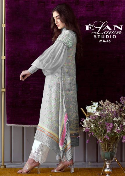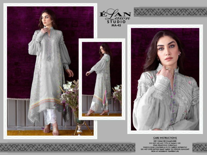 About this product: Elan Lawn Collection Present Elan Lawn Studio MA-45 Series Suit in Beautiful Fancy Colorful Stylish Party Wear Dresses At Wholesale Price. The manufacturer is well known and the quality is pre-tested and checked. For Booking, you can Call or WhatsApp us on +91-90167 57806.
