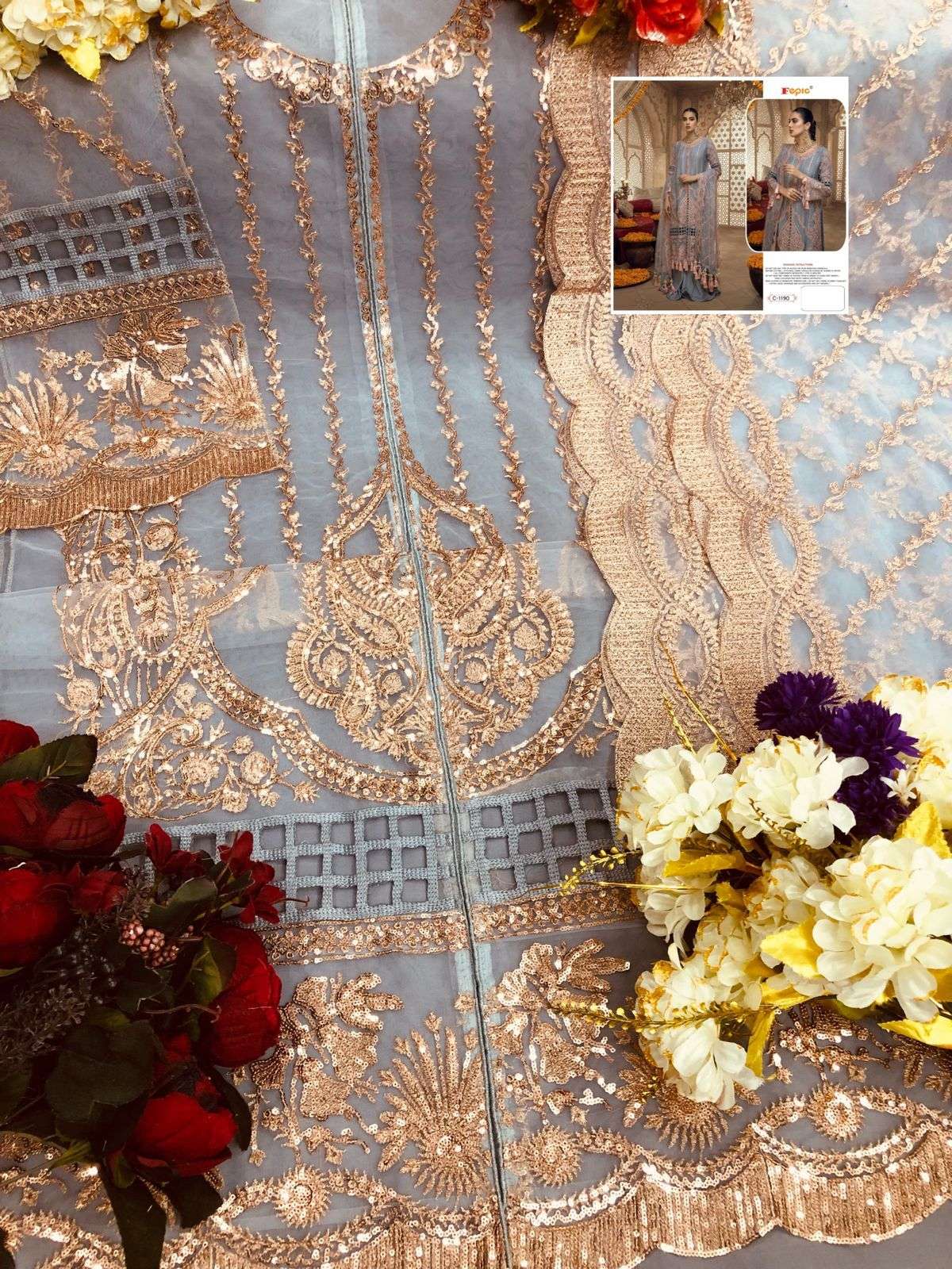 Fepic Present Fepic Hit Desgin C-1190 Series Net Salwar Suit in Gray Colour