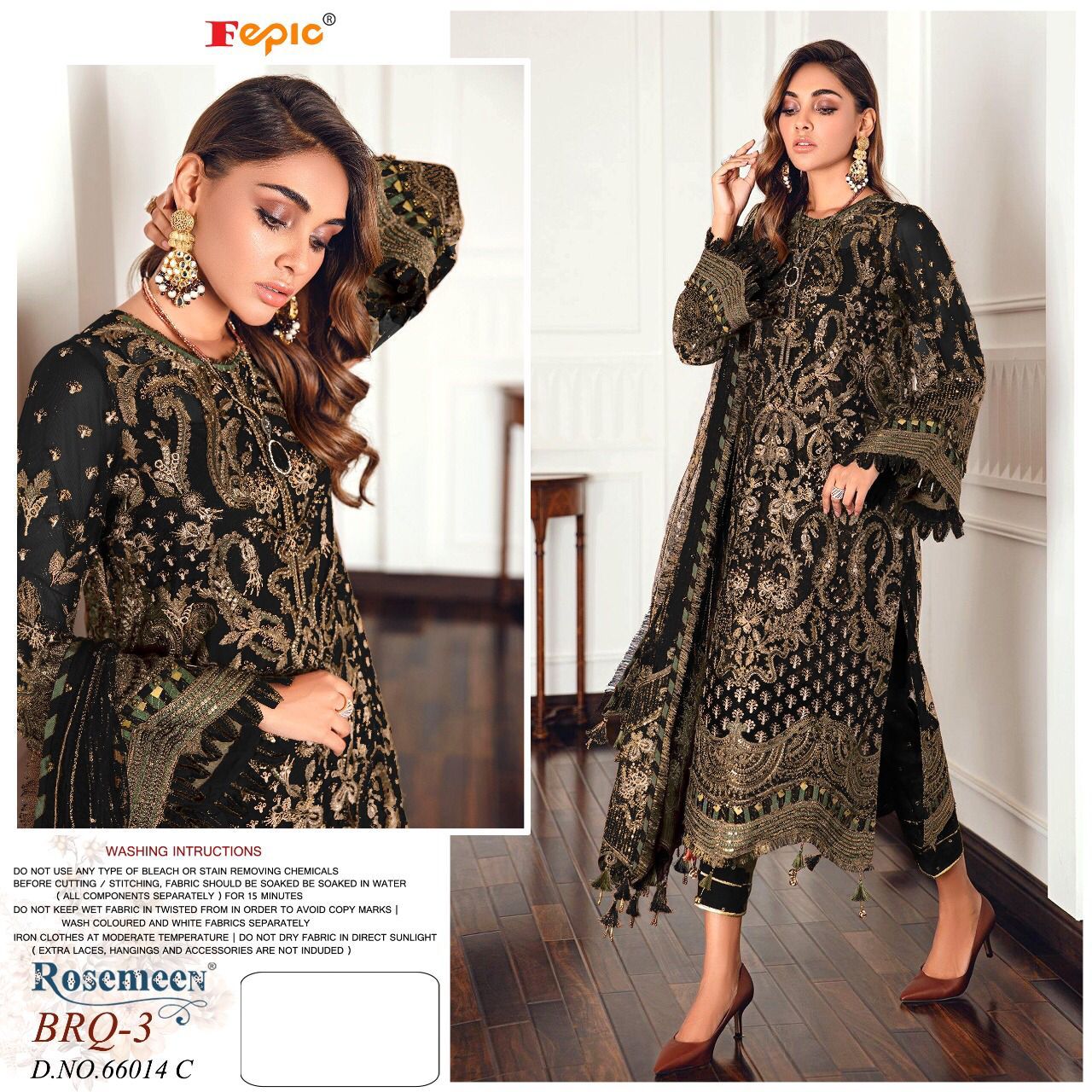 About this product: Fepic Rosemeen 66014 C BRQ 3 Pakistani Suit in Beautiful Fancy Colorful Stylish Party Wear Dresses At Wholesale Price. The manufacturer is well known and the quality is pre-tested and checked.