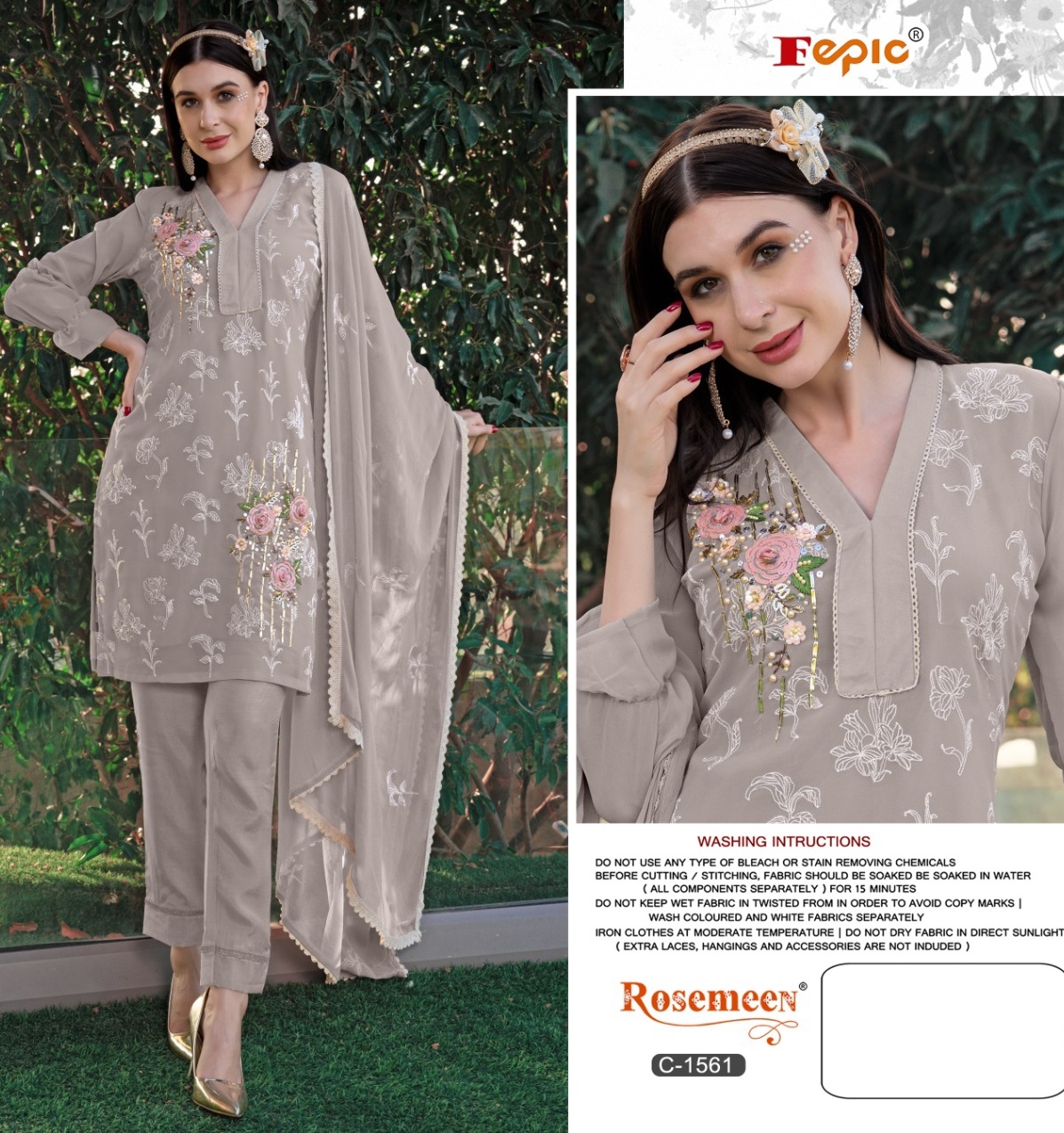 Fepic Rosemeen D 1561 Pakistani Suits in Gray Colour