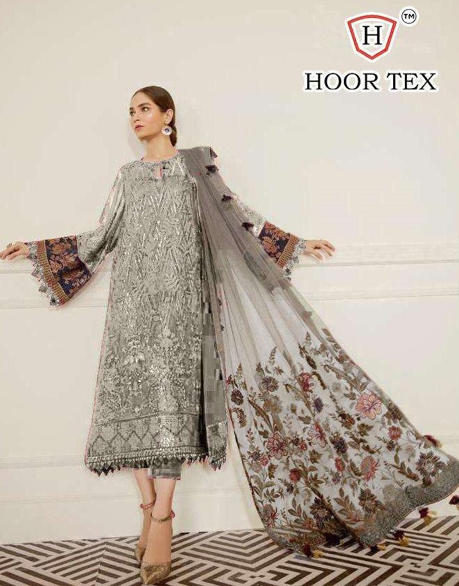 Hoor Tex Present Hoor Tex D.No.18009-M Georgette Salwar Suits in Silver Colour