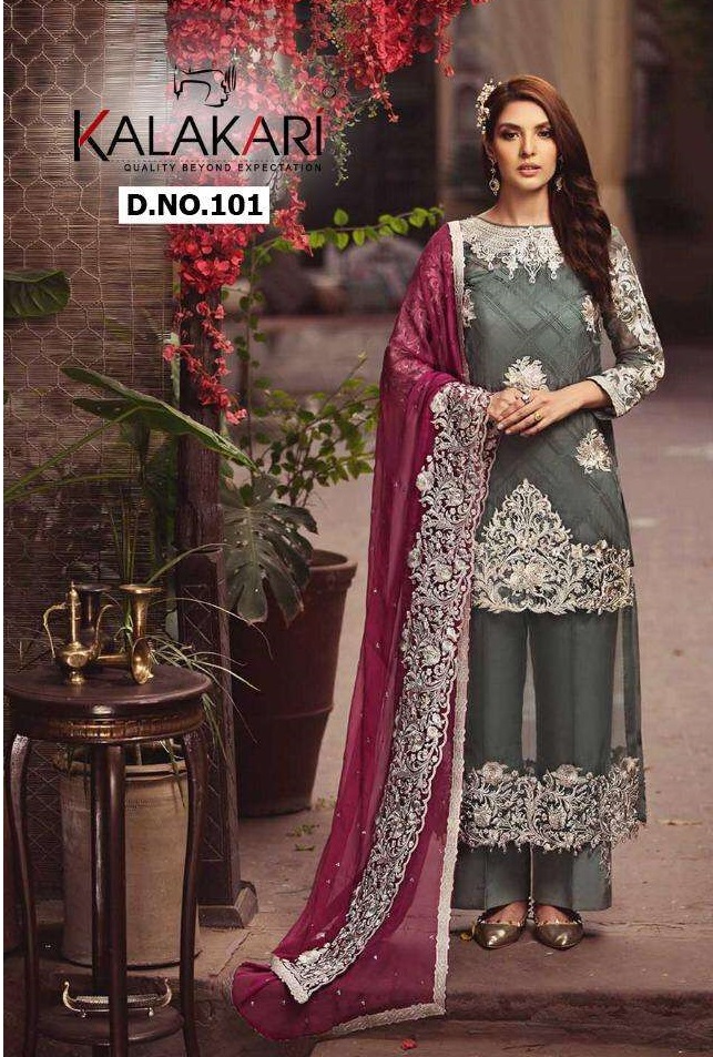 Kalakari Hit Design 101 by Kalakari Series Salwar Suits in Gray & Silver Colour