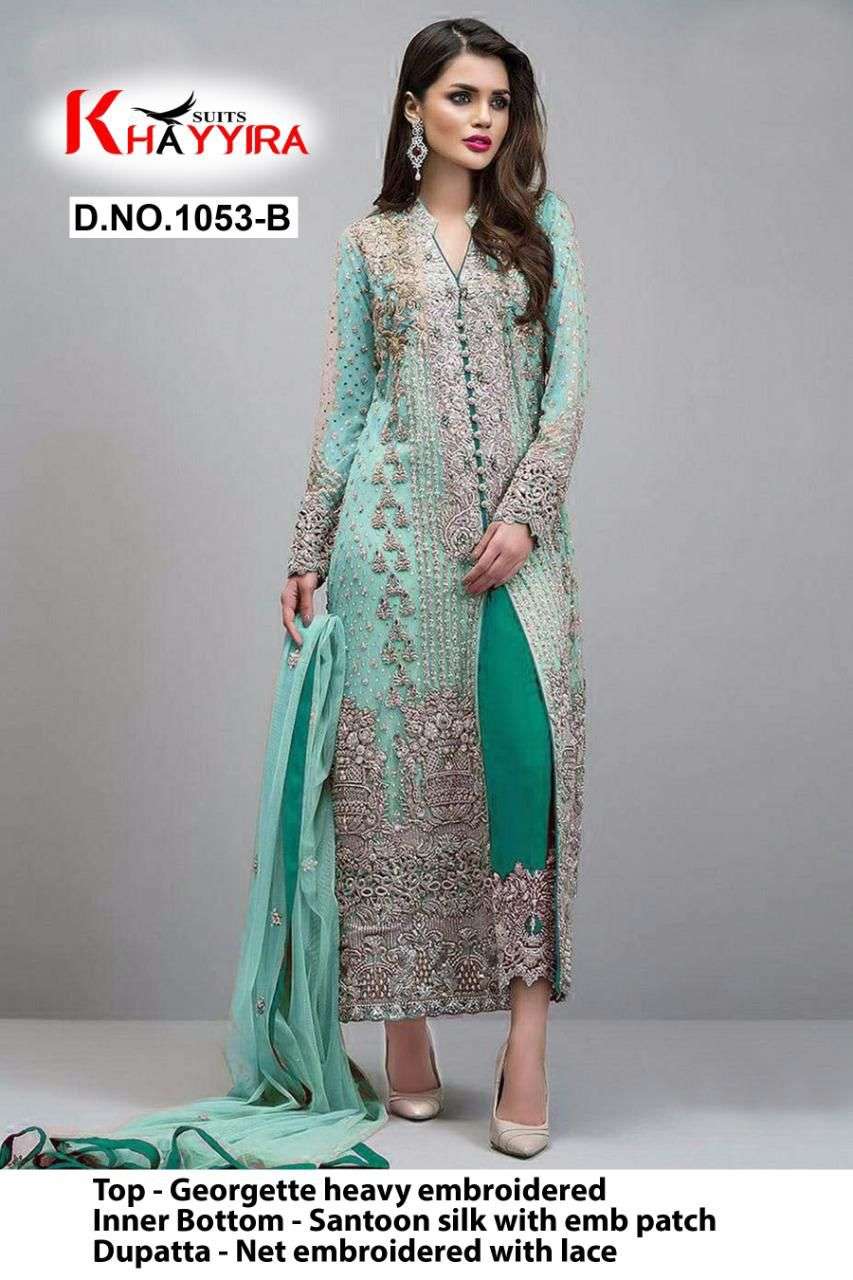 About this product : Khayyira Suit Present Khayyira D.no.1053-B Series Georgette Suit Wear Dresses At Wholesale Price. The manufacturer is well known and the quality is pre-tested and checked.