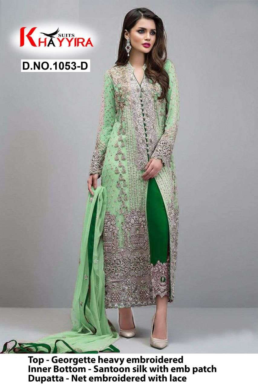 Khayyira Suit Present Khayyira D.no.1053-D Series Georgette Suit in Green Colour