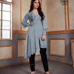 Designer Tunic with hand embroidery Kurti attached handmade 3D flowers embellished with Beautiful designer sleeves paired with