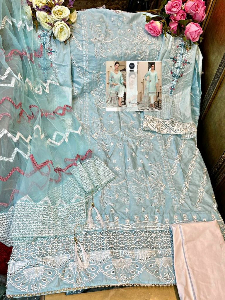 Mehboob Tex Present Design No.77773-A Cotton Salwar Suit in Sky Blue Colour