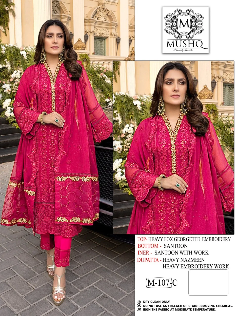 About this product: Mushq Hit Design M-107-C Series Salwar Suit in Beautiful Fancy Colorful Stylish Party Wear Dresses At Wholesale Price. The manufacturer is well known and the quality is pre-tested and checked. For Booking, you can Call or WhatsApp us on +91-90167 57806.