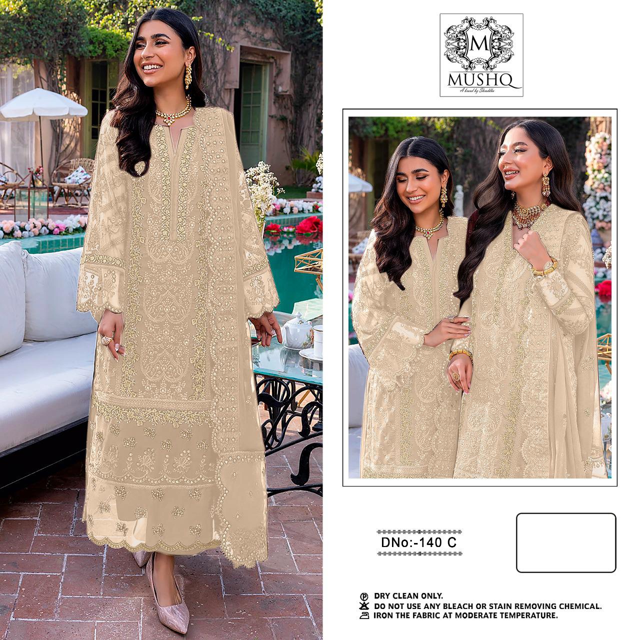 About this product: Mushq Hit Design M-140-C Series Salwar Suit in Beautiful Fancy Colorful Stylish Party Wear Dresses At Wholesale Price. The manufacturer is well known and the quality is pre-tested and checked. For Booking, you can Call or WhatsApp us on +91-90167 57806.