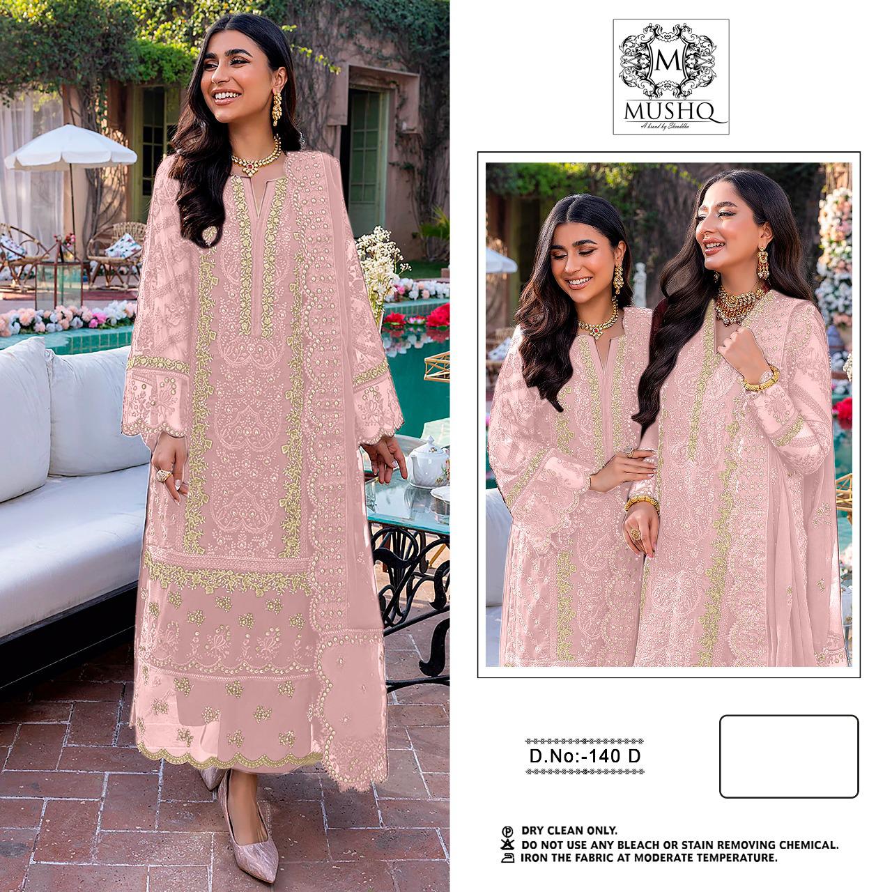 About this product: Mushq Hit Design M-140-D Series Salwar Suit in Beautiful Fancy Colorful Stylish Party Wear Dresses At Wholesale Price. The manufacturer is well known and the quality is pre-tested and checked. For Booking, you can Call or WhatsApp us on +91-90167 57806.