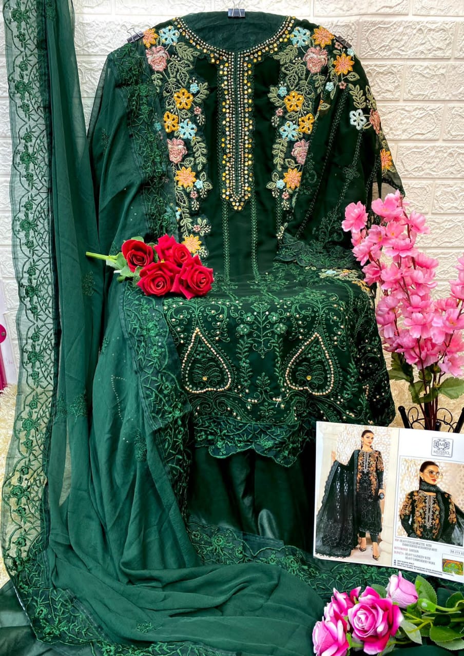 Home Dresses Original Indian Dress Mushq M 173 Pakistani Suits In Green Colour