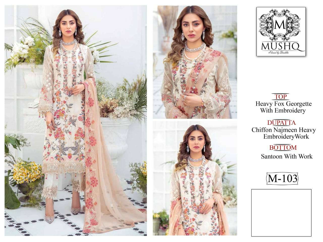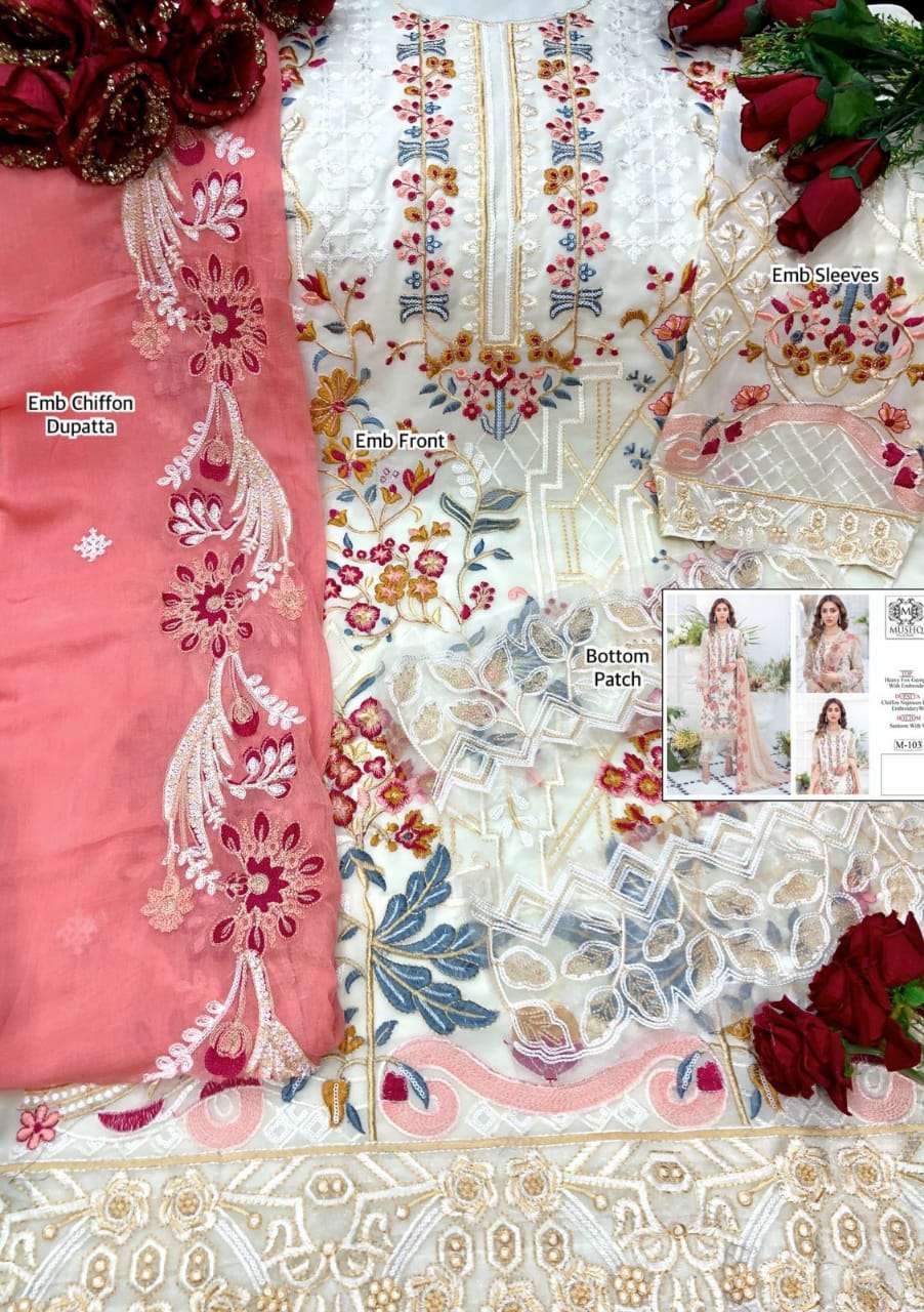 About this product: Mushq Present Mushq Hit Design M-103 Series Salwar Suit in Beautiful Fancy Colorful Stylish Party Wear Dresses At Wholesale Price. The manufacturer is well known and the quality is pre-tested and checked. For Booking, you can Call or WhatsApp us on +91-90167 57806.
