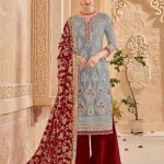 Mutiyaar gold - 114-B Grey and Red - Heavy quality Georgette Embroidery With Heavy Work & lace