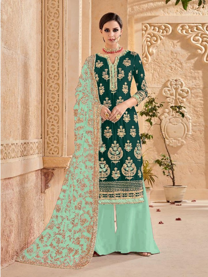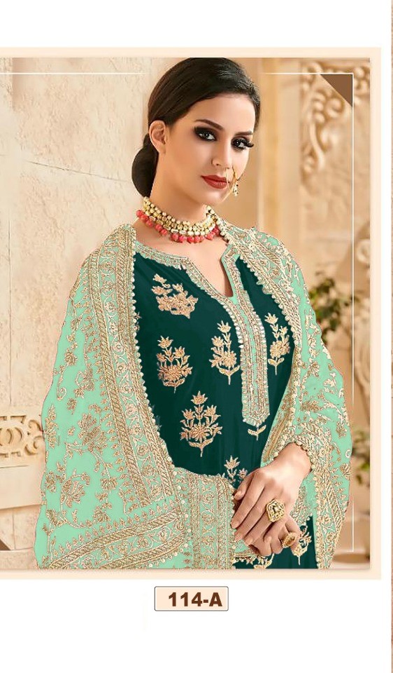 Mutiyaar gold – 114-A, Green Heavy quality Georgette Embroidery With Heavy Work &lace
