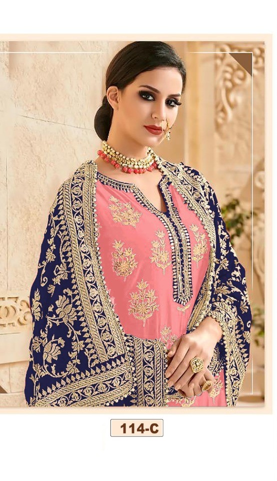 Home Dresses Original Indian Dress Mutiyaar gold – 114-C Pink and Blue – Heavy quality Georgette Embroidery With Heavy Work & lace