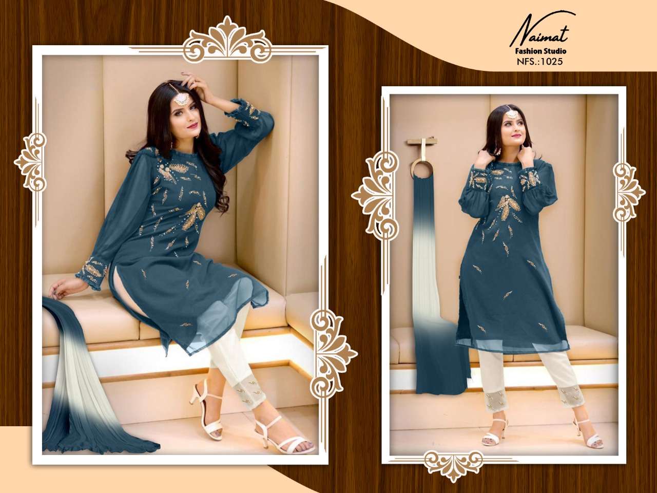 About this product: Naimat Fashion Studio Present N.F.S -1025 Series Salwar Suit in Beautiful Fancy Colorful Stylish Party Wear Dresses At Wholesale Price. The manufacturer is well known and the quality is pre-tested and checked.